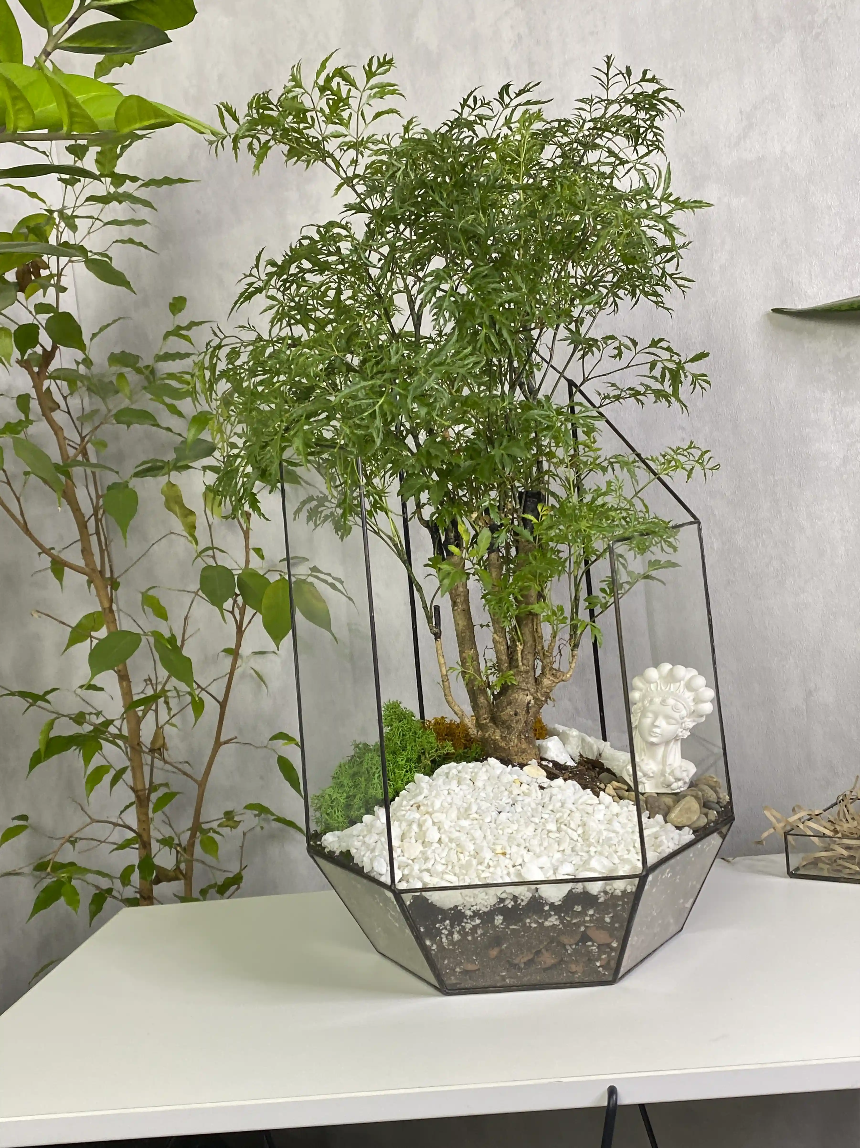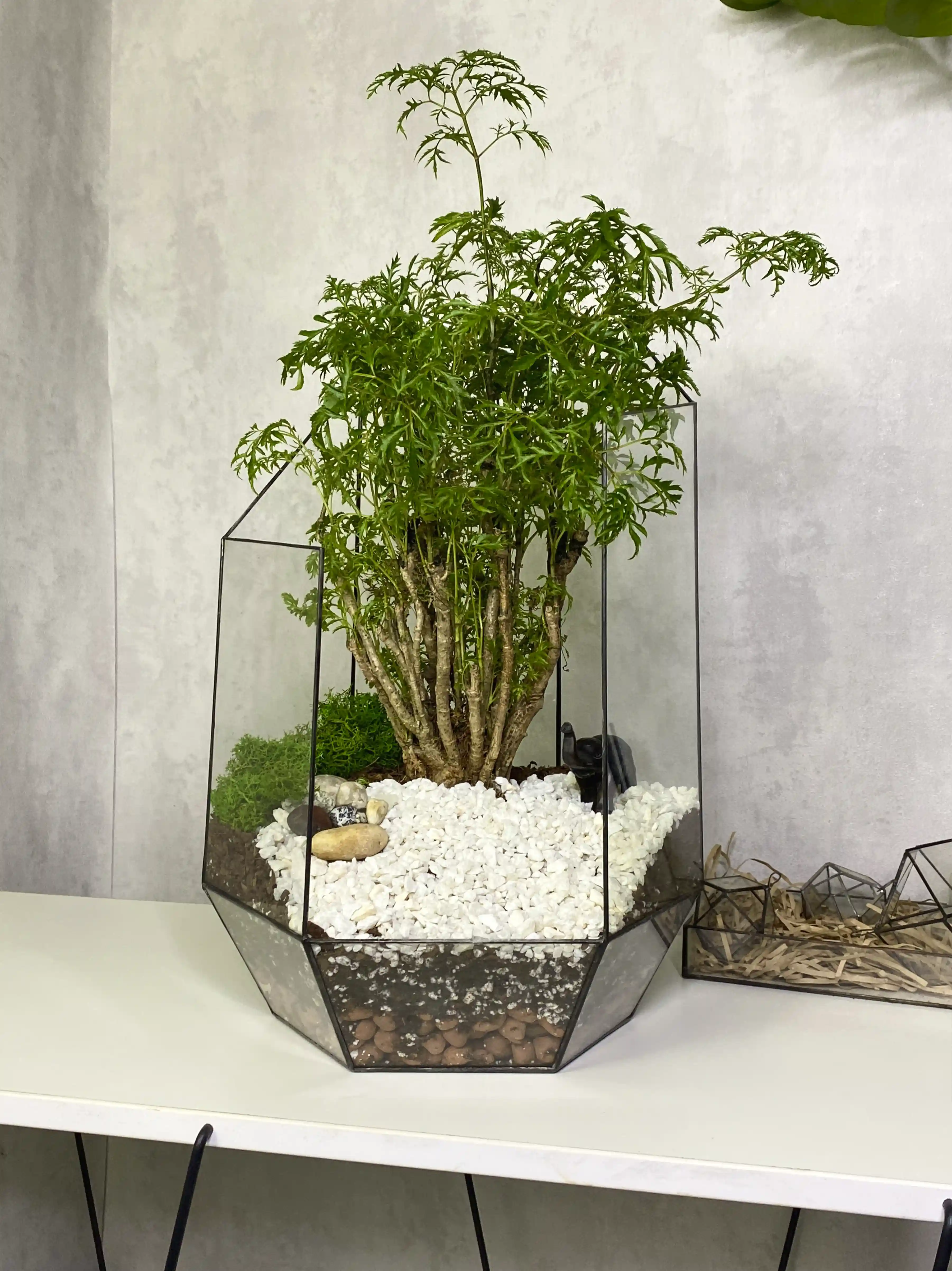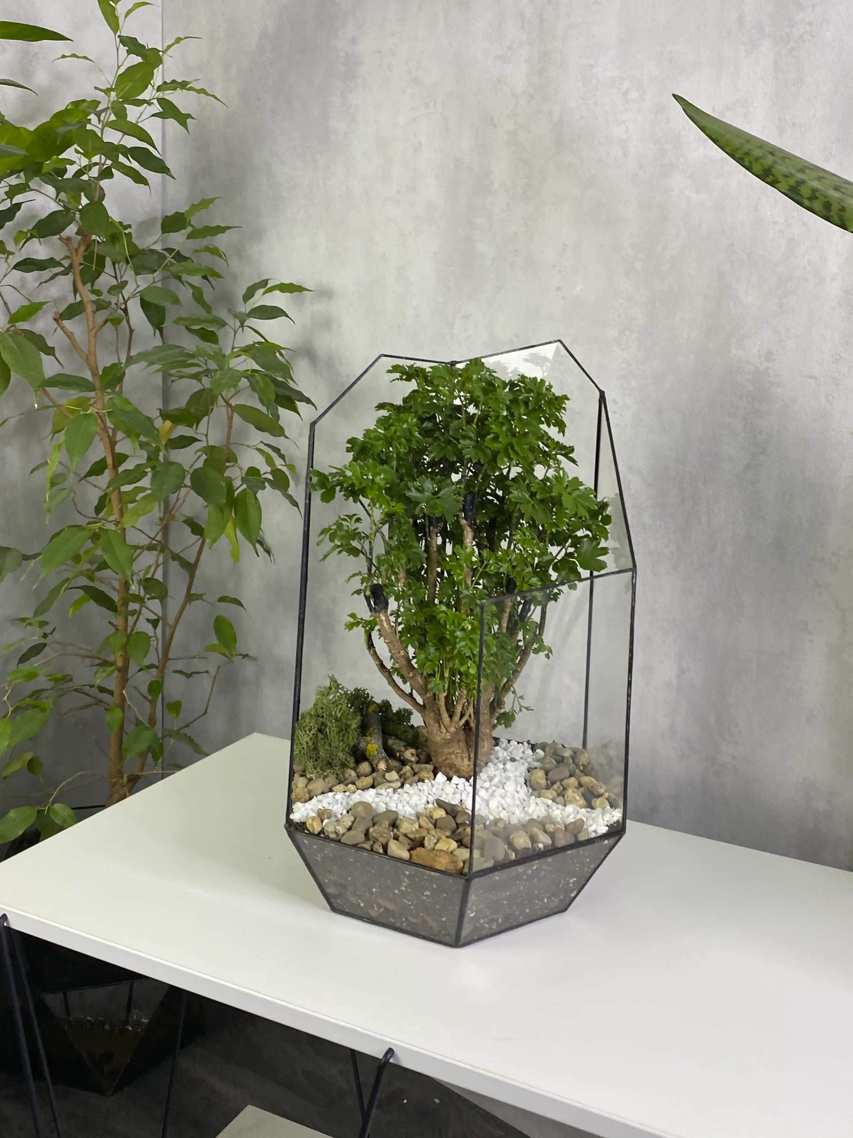 Завораживающий и уникальный в своем роде, растение бонсай во флорариуме «Икосаэдр» станет идеальным акцентом в любом интерьере. Это не просто элемент декора, но и символ природы и спокойствия.