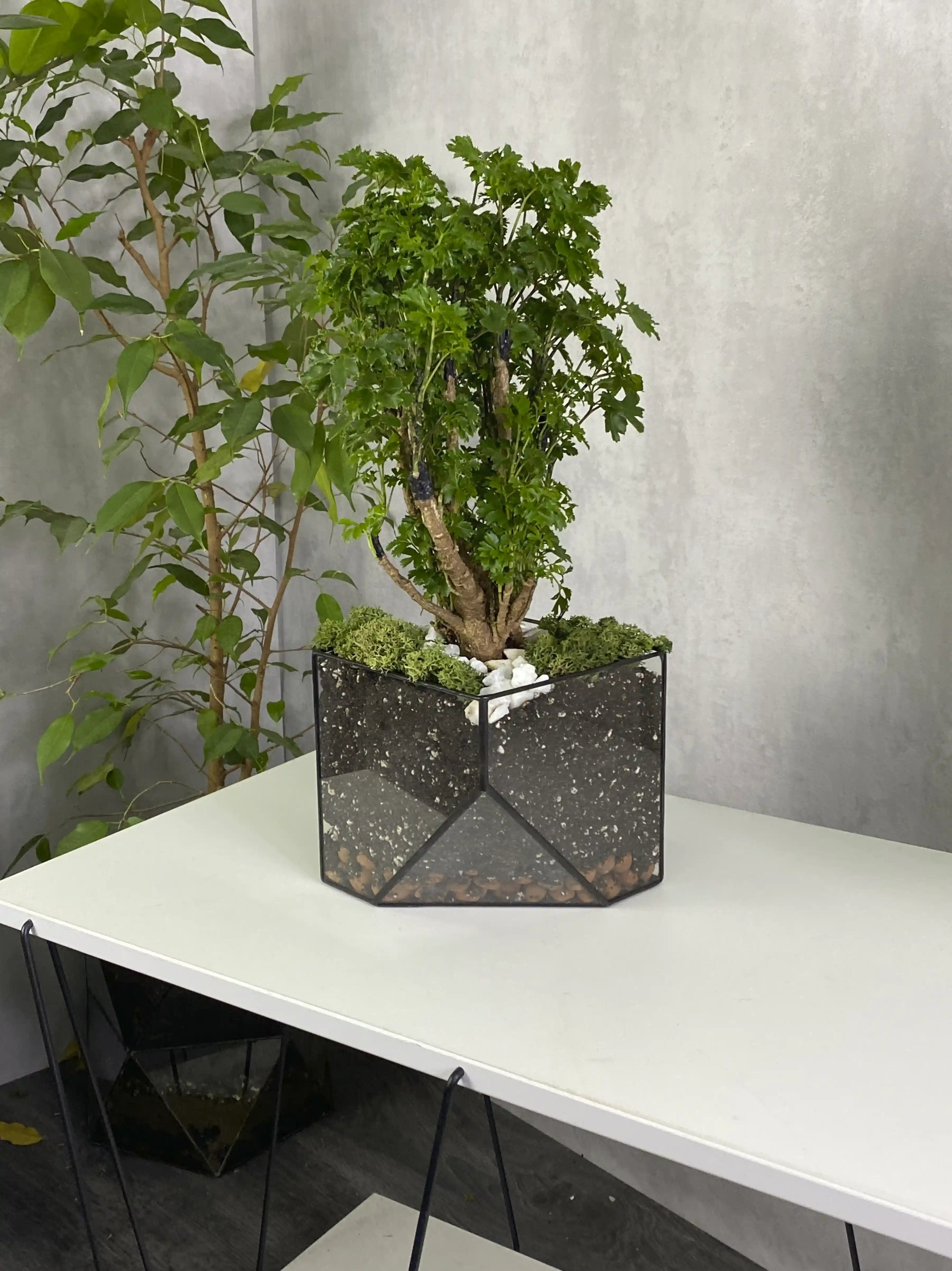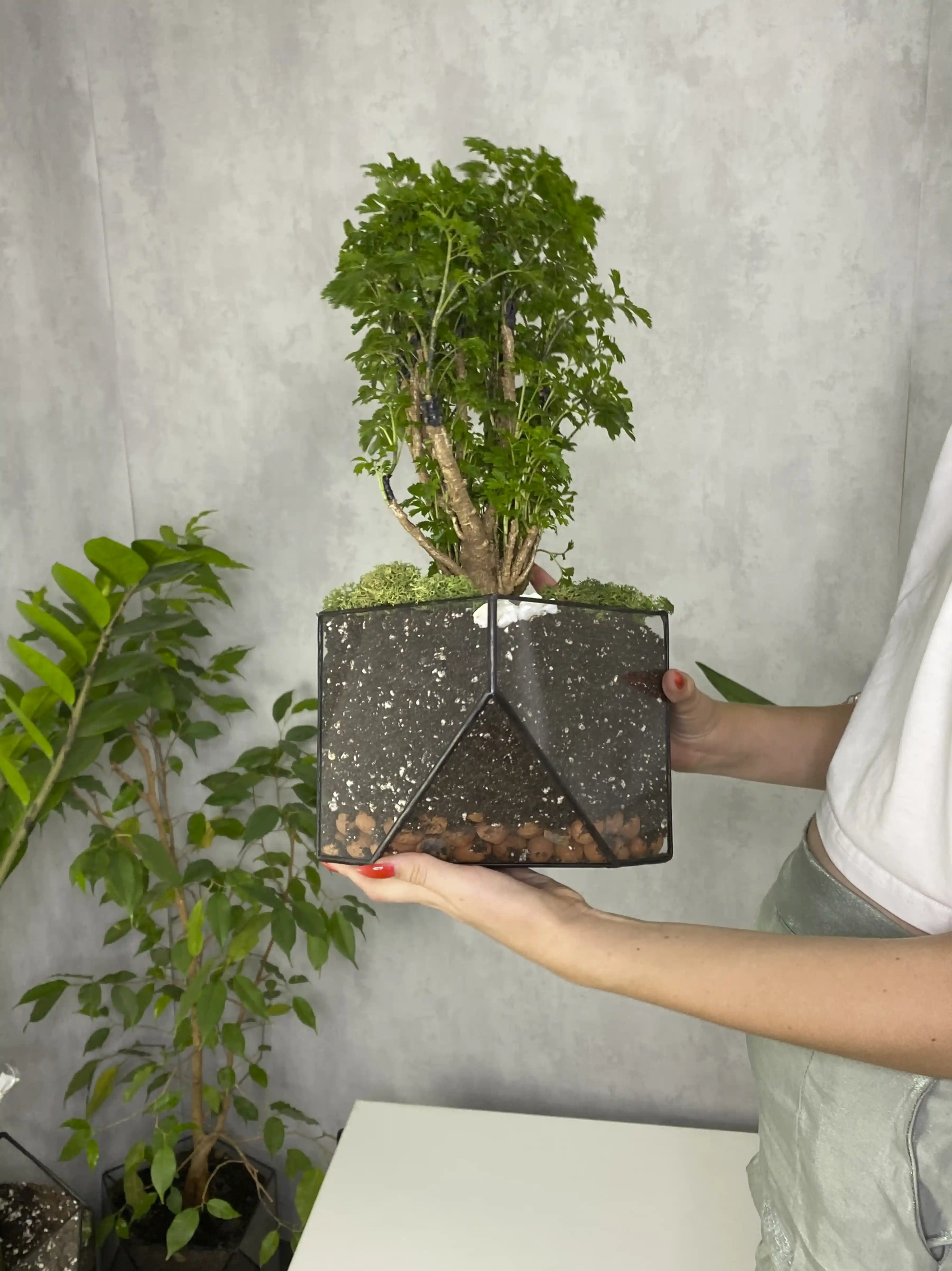 Завораживающий и уникальный в своем роде, растение бонсай во флорариуме «Икосаэдр» станет идеальным акцентом в любом интерьере. Это не просто элемент декора, но и символ природы и спокойствия.