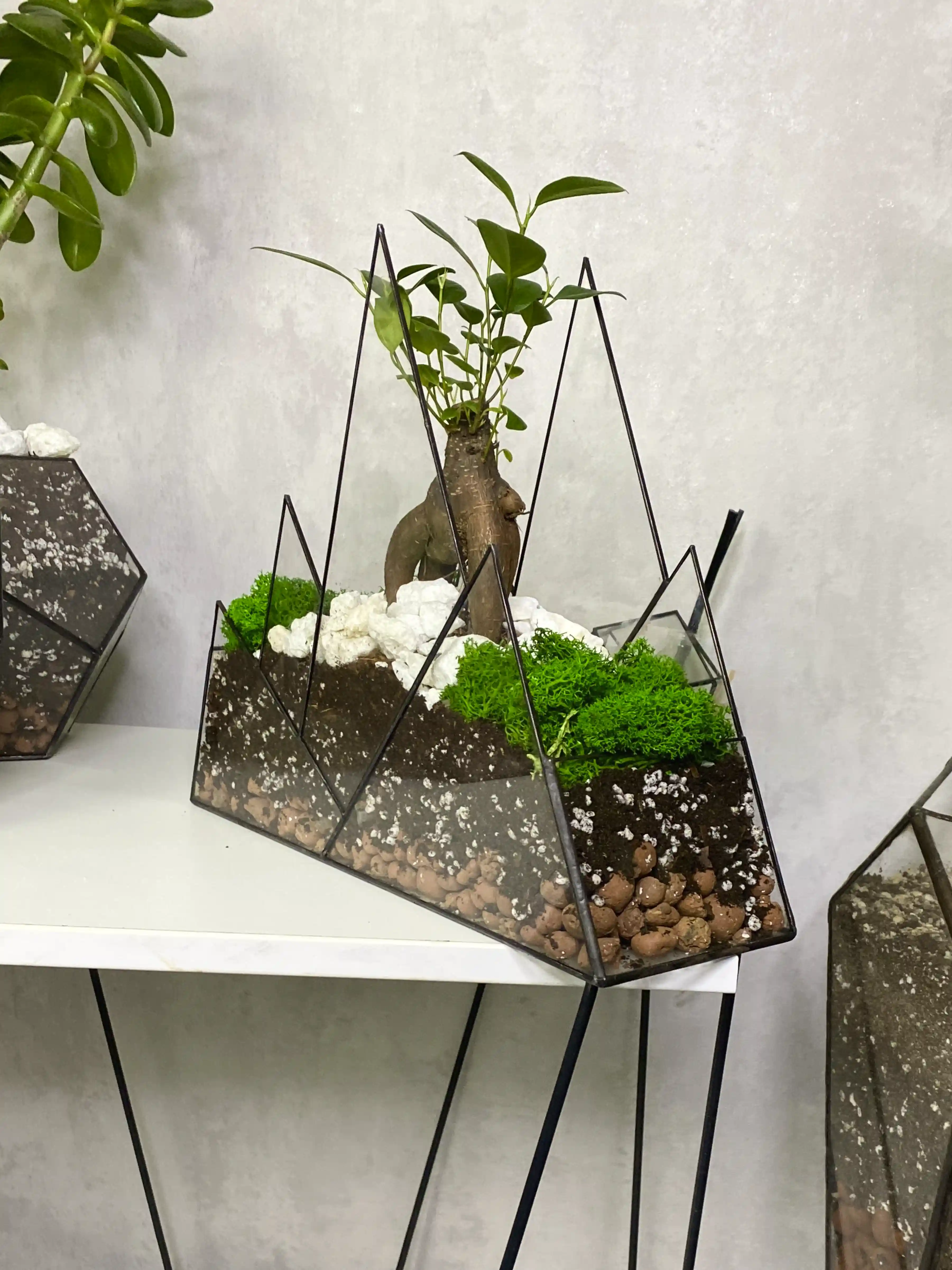 Завораживающий и уникальный в своем роде, растение бонсай во флорариуме «Сердце» станет идеальным акцентом в любом интерьере. Это не просто элемент декора, но и символ природы и спокойствия.