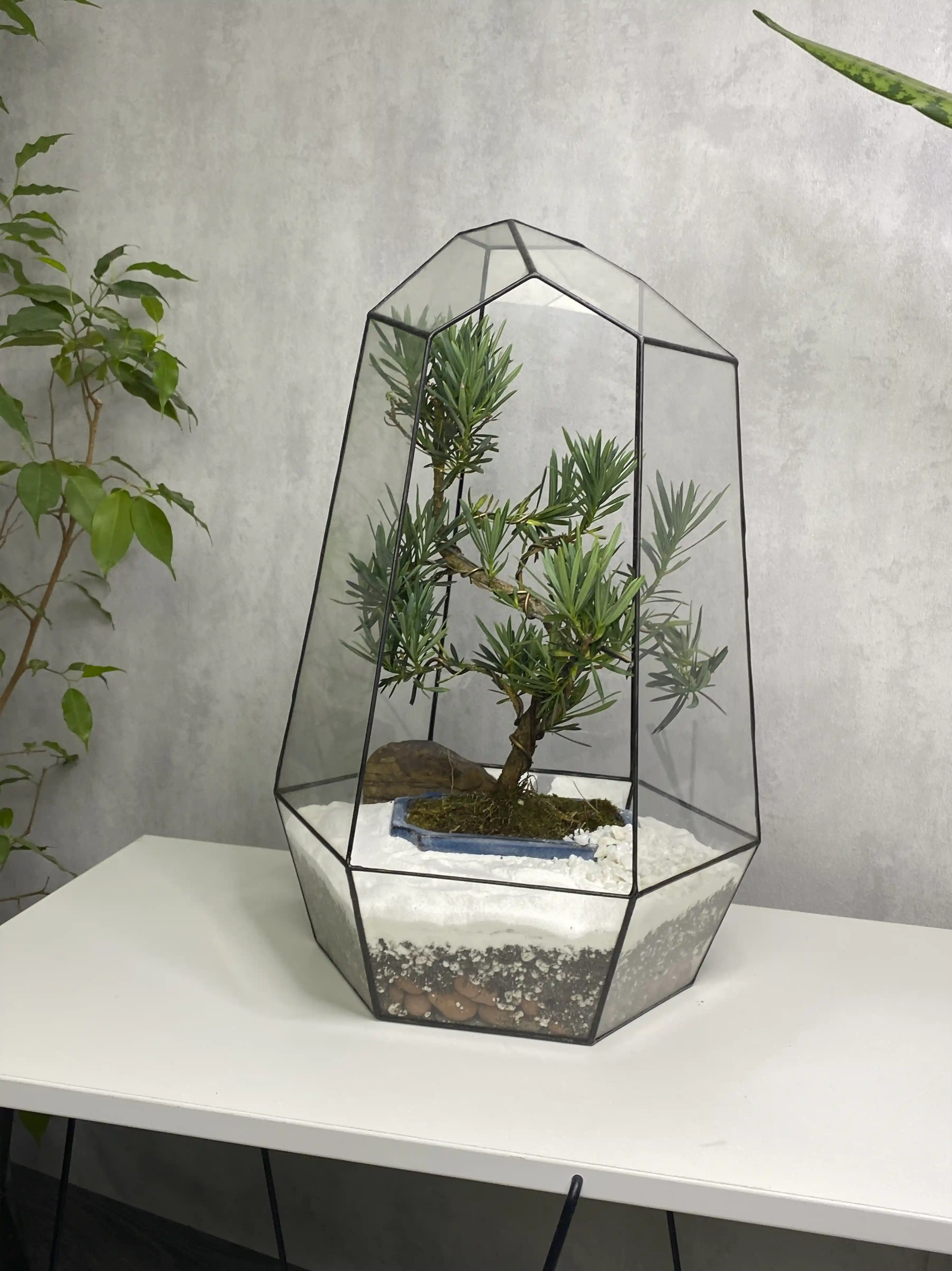 Представляем вашему вниманию уникальный бонсай Подокарпус Макрофилус, который станет прекрасным дополнением к любому интерьеры. Этот стильный и ухоженный бонсай идеально впишется в ваш дом или офис, добавляя атмосферу уюта и гармонии. Благодаря своему компактному размеру и привлекательному внешнему виду, он отлично смотрится в флорариуме, который выполнен в оригинальном дизайне "Айсберг".