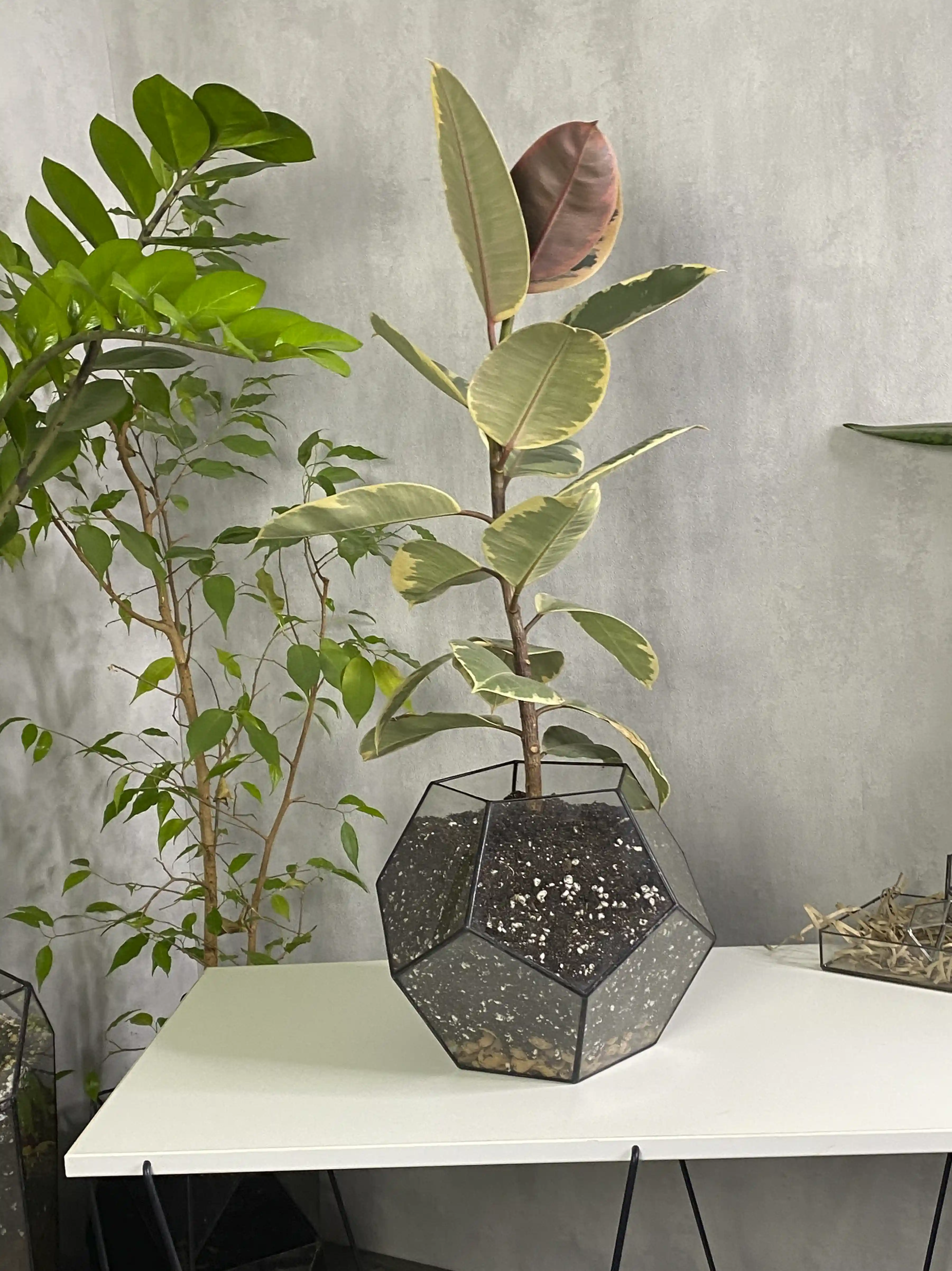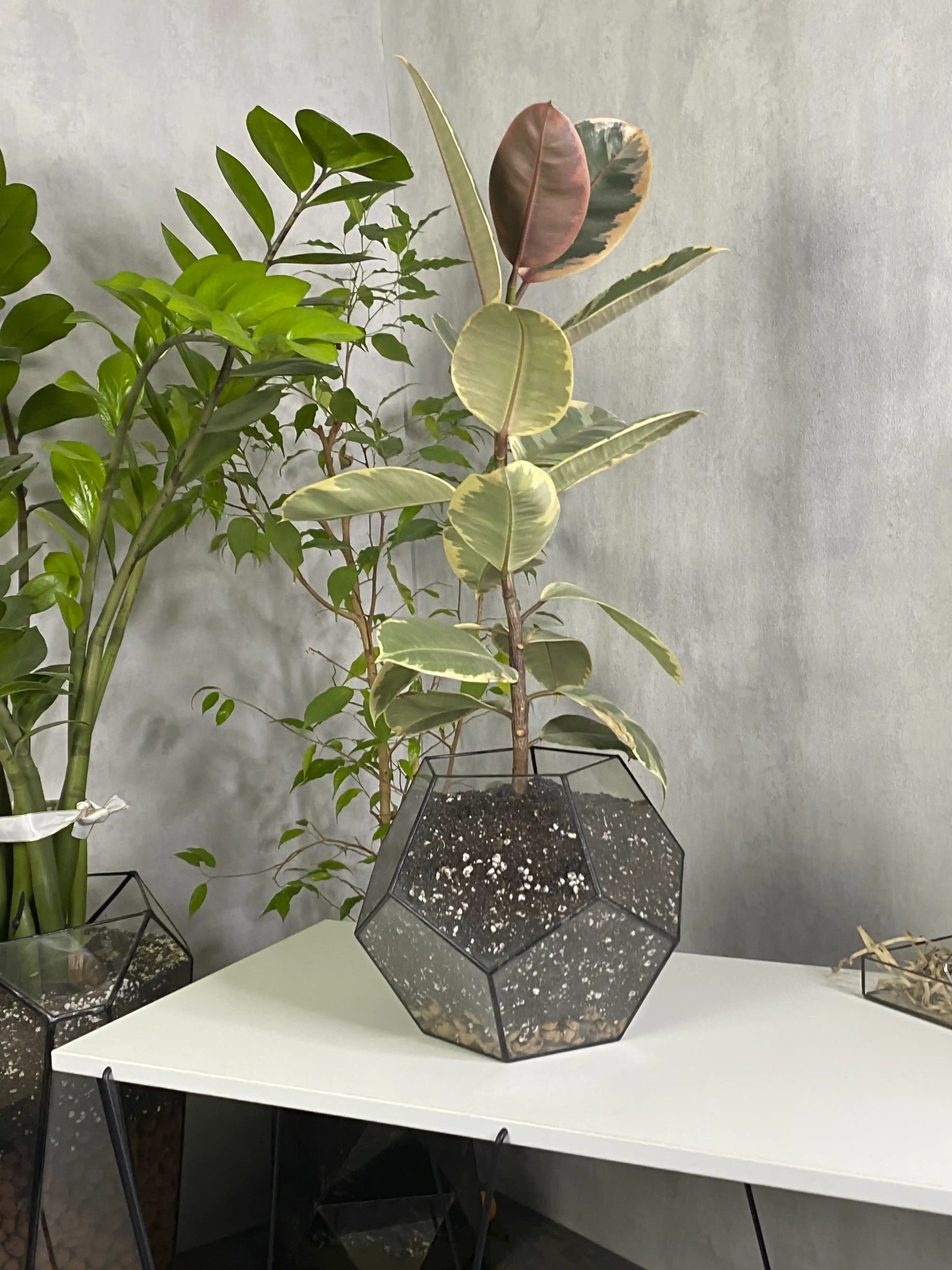 • Эстетика: Флорариум с фикусом эластикой станет настоящим украшением вашего дома или офиса. Его современный дизайн подчеркнет индивидуальность пространства и создаст атмосферу уюта и гармонии.