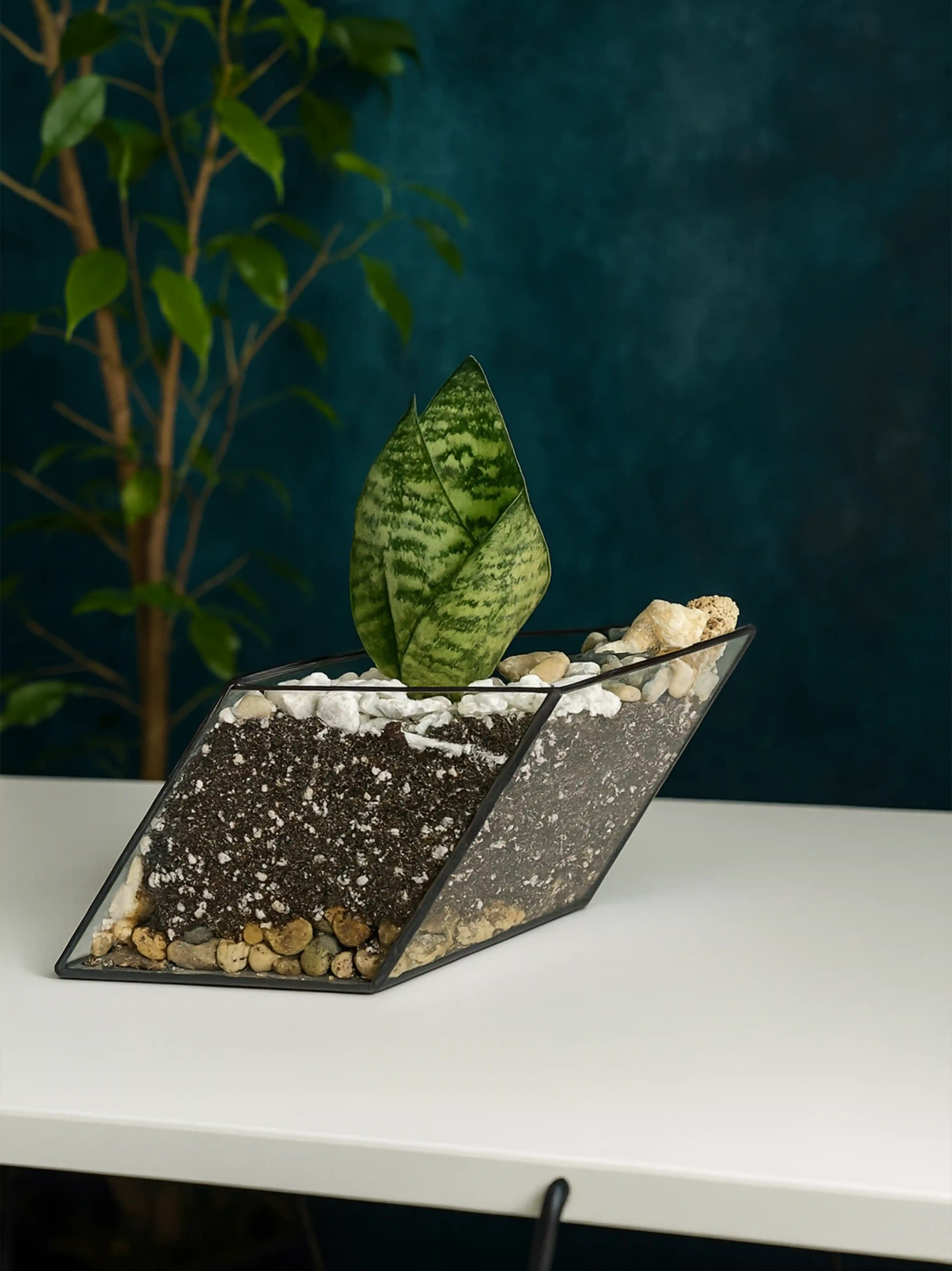 Эта миниатюрная композиция станет отличным решением для офисов и жилых помещений, привнося в них свежесть и стиль. Уникальный дизайн флорариума позволит вам наблюдать за развитием растения, а также делать его частью вашего повседневного интерьера. Не упустите возможность внести природные акценты в свой дом с помощью сансевиерии в флорариуме Лодочка.