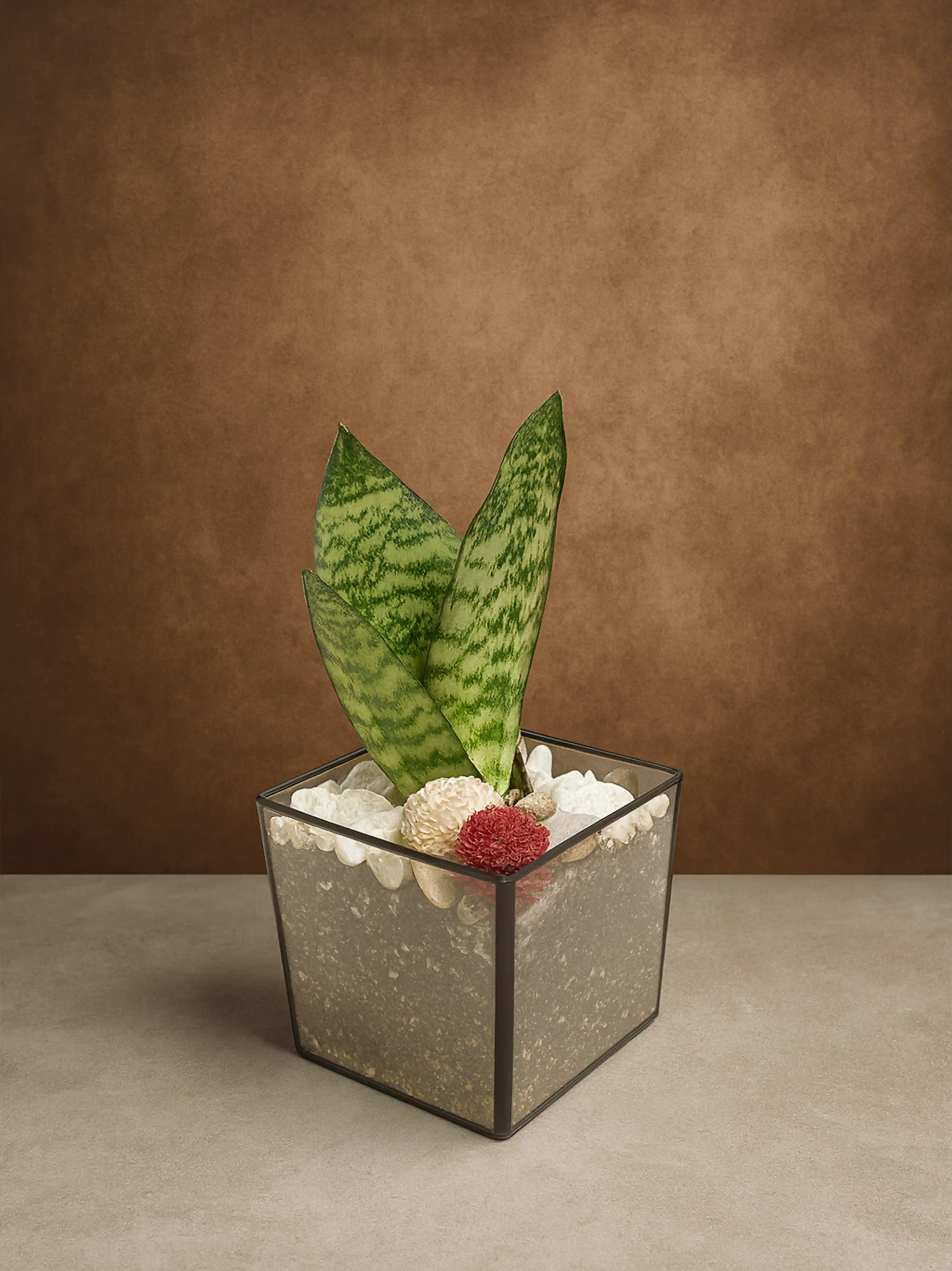 Флорариум выполнен из прочного материала, который обеспечивает отличную видимость растения и делает его лёгким в уходе (Стекло). Благодаря закрытой конструкции, мини-сад легко поддерживать в хорошем состоянии, а его эффектный дизайн привнесёт нотки природной гармонии в ваше окружение. Мини-сансевиерия прекрасно подходит для размещения на столе, полке или подоконнике, а также может стать оригинальным подарком для ваших близких.