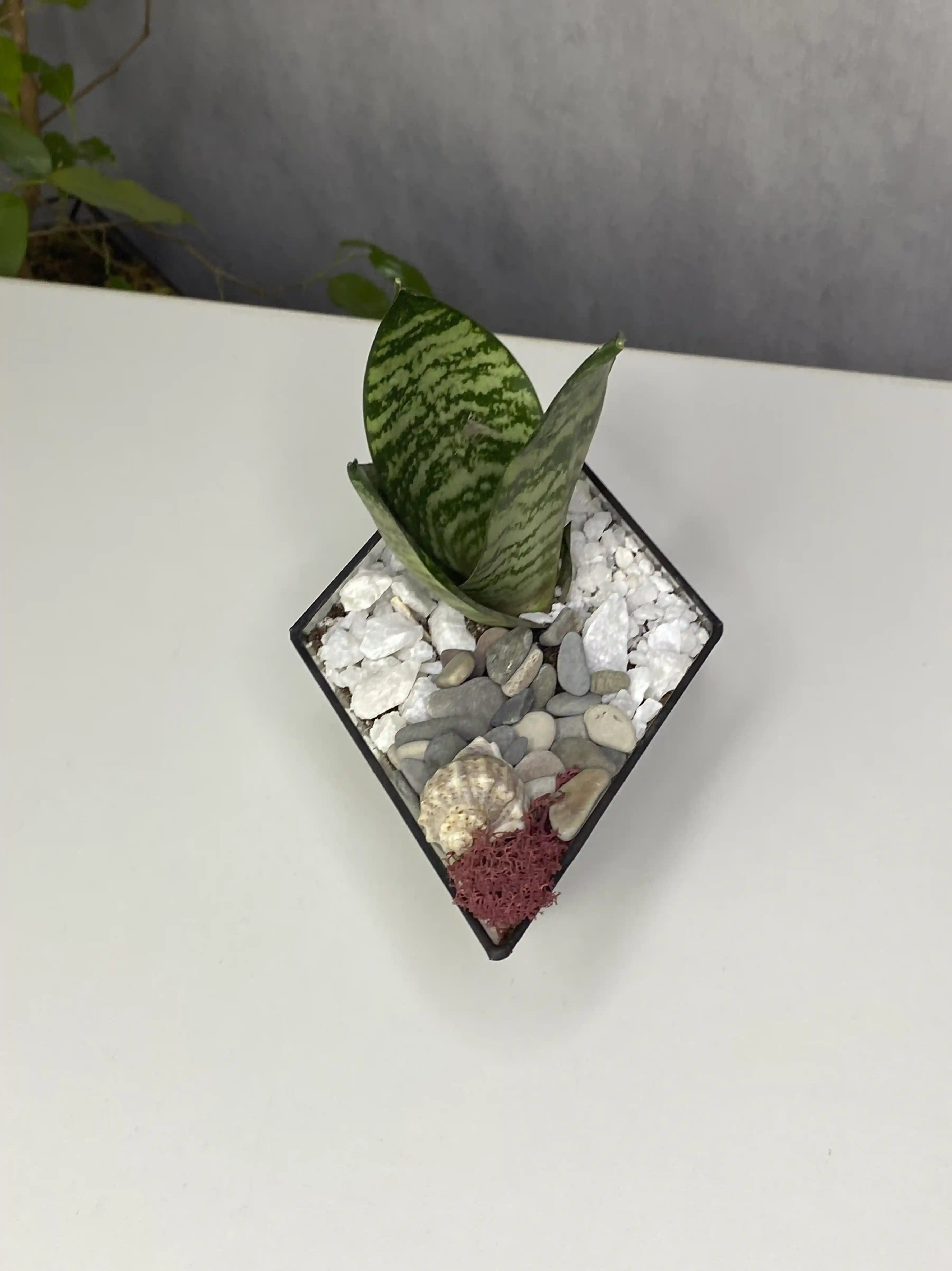 Создайте уютную атмосферу в вашем доме с миниатюрной сансевиерией, которая представлена в стильном флорариуме в форме лодочки. Этот элегантный элемент декора станет ярким дополнением интерьера и подарит вам возможность наслаждаться живыми растениями даже в условиях ограниченного пространства. Сансевиерия известна своей неприхотливостью и хорошей способностью очищать воздух, что делает её отличным выбором для любого помещения.